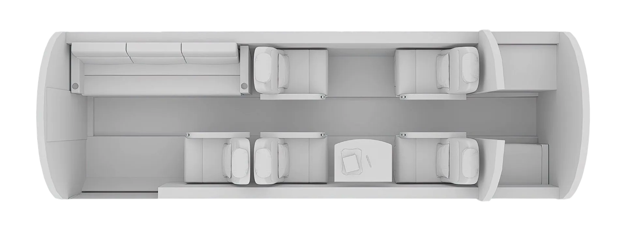 The aircraft typically seats between 6 and 9 passengers, depending on configuration.